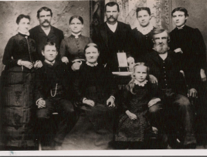 (Seated right to left) John Rodger Boulden, Maggier Mary Boulden, Mary Miller Boulden, Bemjamin Thurman Boulden Standing: Martha Curtis Boulden, Charles Walker Boulden, Catherine Ann Boulden, John Franklin Boulden, Eva Jane Boulden, Emma Florence Boulden George Worth Boulden (pictured on stand.) |